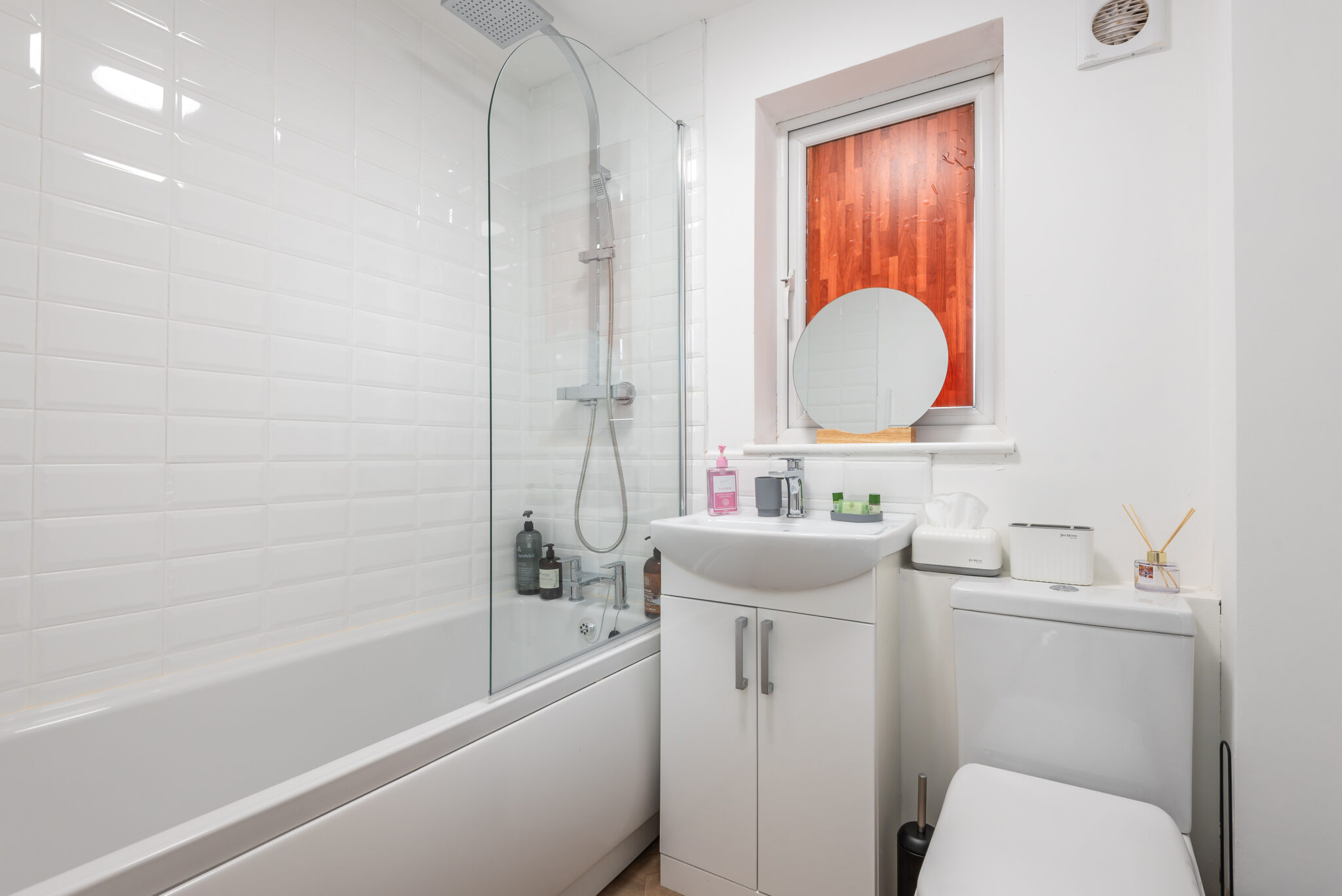There is the downstairs bathroom with level access to shower and w.c and upstairs family bathroom with bath and shower.